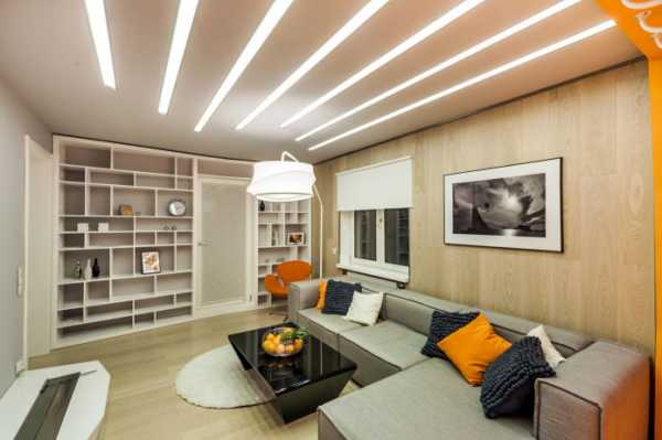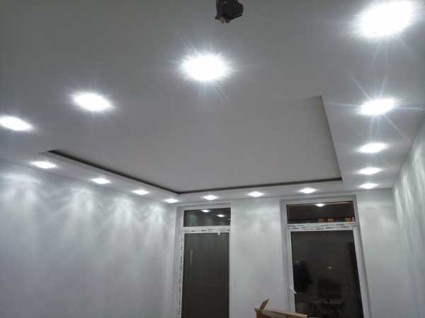 Светильники в натяжных потолках гостиной