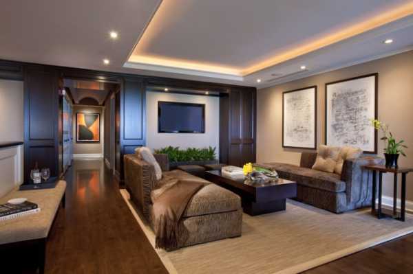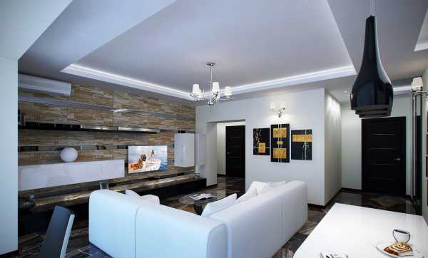 Что же даст двухуровневый потолок в интерьере гостиной?