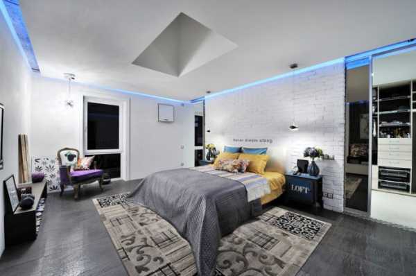 Дизайнеры часто используют диодные мини-светильники для имитации звезд на потолке. Этот вариант прекрасно подойдет для спальни или детской комнаты.