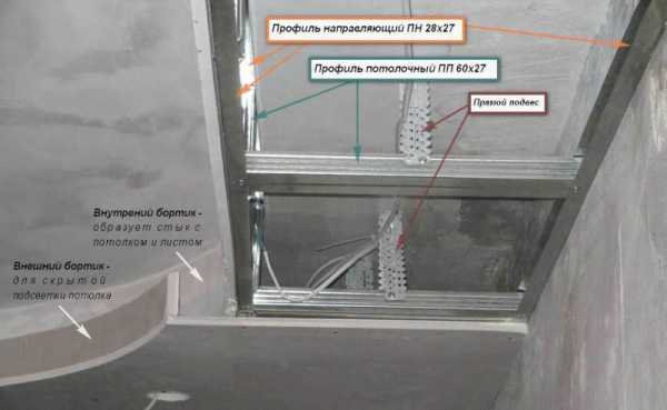 Конструкция натяжного потолка с подсветкой