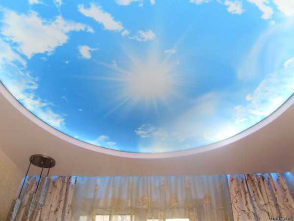 Очень красиво выглядит и светло-голубое небо с белоснежными облаками, которое дополняется красивой подсветкой. Вся конструкция создается с помощью белой ПВХ пленки с нанесенной на нее картинкой. Изображение облаков и небесной глади, особенно на глянцевой поверхности создает ощущение спокойствия и умиротворенности, а также дополнительно помогает визуально увеличить пространство комнаты.