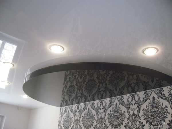 Круглая форма может использоваться в как в одноуровневых конструкциях, так и в многоуровневых. В первом случае — круг спаивается с общим полотном. А во втором — круглая конструкция может выступать или быть утопленной в основном полотне.