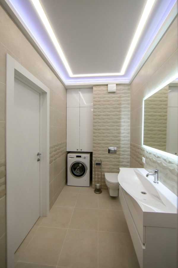 Вариант с подсветкой через полотно выглядит выигрышно — маленькая комната с такой подсветкой визуально увеличится, а в просторной — за счет мягкого рассеивания света будет создана уютная обстановка.