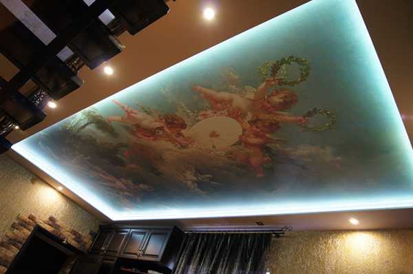 Натяжной потолок с подсветкой и фотопечатью