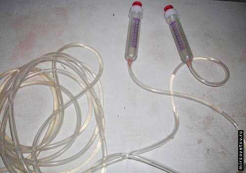Водяной уровень позволяет поставить на большом расстоянии друг от друга две одинаковые по высоте метки.
