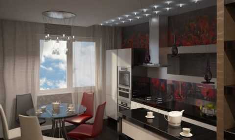 Светильники, установленные по периметру потолкаЕсли же вы хозяин квартиры-студии, то здесь кухня и гостиная соединены в одну комнату (фото ниже). Бывает и так, что владелец жилья проводит перепланировку дома, соединяя эти два помещения. В таких случаях декор кухни и зала требует специального подхода. Зонировать студию поможет грамотное расположение источников света.
