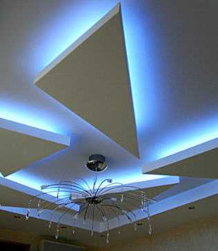 - Создания многоярусных конструкций со встроенными светильниками и подсветкой.