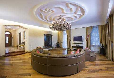 - Арочный потолок также является отличным выбором для просторной гостиной. Многим хочется уйти от строгих геометрических форм, которыми отличается большинство современных жилых помещений. Арочный свод может сделать плавным переход от потолка к стене, как с одной стороны, так и с двух.