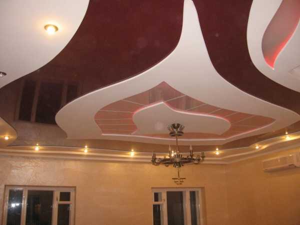 Сложная потолочная системаЭластичность материала позволяет соорудить практически любую форму. Комбинированная потолочная конструкция привлекательна. При этом она позволит зонировать помещение, создать элегантный декор.