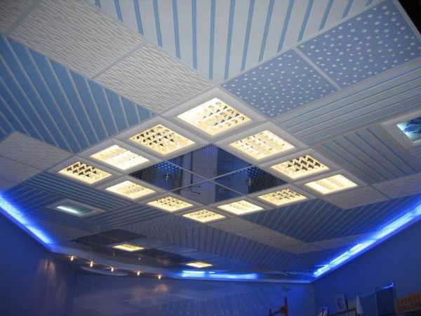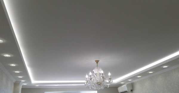 - Можно установить любые светильники и организовать сложную осветительную систему. Внешне подвесной потолок из гипсокартона нередко трудно отличить от натяжного матово-белого потолка. По возможностям они также не различаются. Потому нередко они сочетаются вместе.