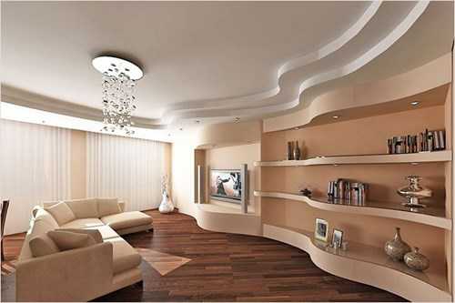 Потолки из гипсокартона в зал имеют ряд важных достоинств: