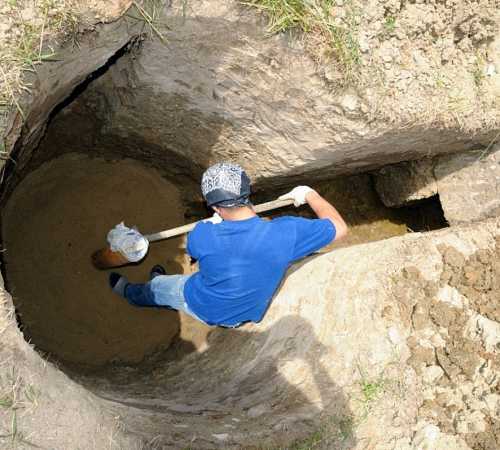 - Обязательно следует определить уровень залегания грунтовых вод. Как правило, его проводят на этапе строительства фундамента дома, но если вы решили построить хранилище в уже имеющемся здании, определить уровень воды можно самостоятельно. Для этого нужно вырыть лунку глубиной 2,5 метра и в течение недели понаблюдать, насколько интенсивно она заполняется водой. Делать это лучше весной или после сильных дождей осенью, когда уровень подземной воды максимальный.