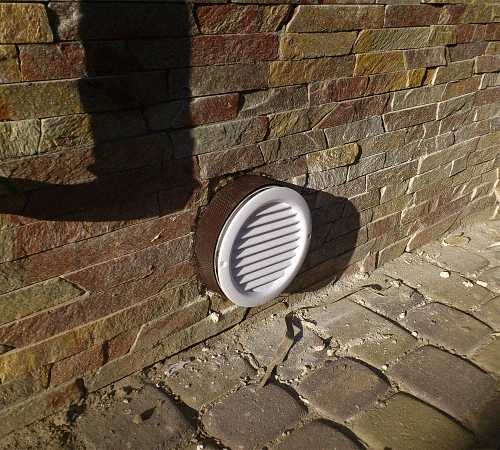 После того, как коробка погреба готова, начинаются работу по устройству вентиляции и гидроизоляции стен. Погреб в доме либо гараже можно оснастить обычной приточно-вытяжной вентиляцией из труб диаметром 10 см, в большинстве случаев ее будет достаточно. Приточную трубу нужно установить прямо под перекрытием, вытяжную — выше уровня пола на 10 см. Трубы выводятся наружу по грунту, их срез должен находится на 30 см выше крыши здания. Отверстие, во избежание замусоривания трубы, нужно перекрыть сеткой.