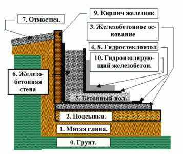 Схема устройства тепло- и гидроизоляции погреба