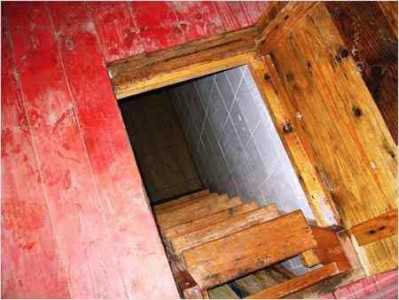 В погребе оборудована лестница из металла