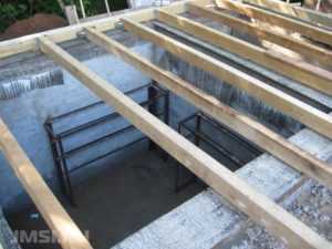 Сделать крышу (или перекрытие) для погреба под уже готовым домом из плит сложно, поэтому чаще для этих целей используют деревянные балки, между которыми укладывают слой утеплителя. Такая конструкция позволяет защитить подземное хранилище от проникновения тепла из дома.