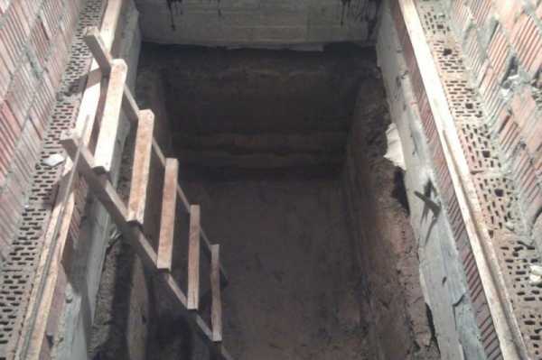 - Если хранилище будет оборудоваться наклонным спуском, сначала роется котлован для спуска, а затем основная яма.