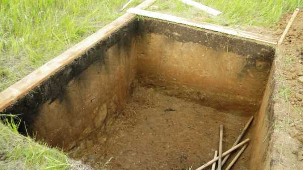 - Чтобы стены не осыпались, в готовом котловане устанавливают опалубку, по углам лучше сделать опоры в виде швеллера.