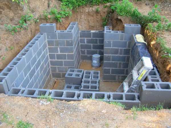 - Кирпичные стены и так не продуваемы, так что им нужна только гидроизоляционная защита. Рубероид, наклеенный на битумную мастику, отлично справится с этой задачей. При желании, для возведения стенок погреба можно использовать бревно или брус. Можно так же применить и бетонные блоки — только лучше, если они будут не из ячеистого бетона, а из золобетона, наполнителем в котором выступает доменный шлак или керамзит.