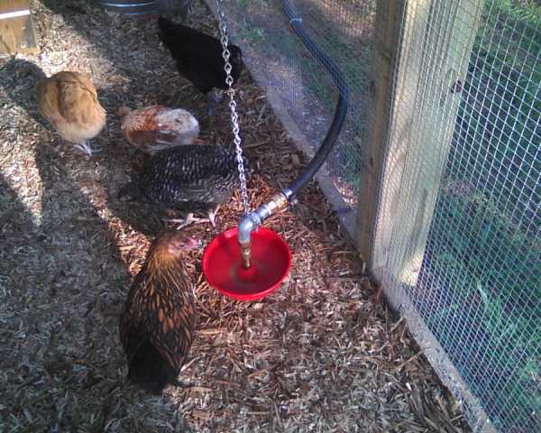 Этот вид поилки можно считать самым лучшим, ведь никогда нет застоя воды, а соответственно, нет образования различных бактерий и микробов; она автоматическая, значит, ваши куры в любой момент могут получить доступ к свежей очищенной воде.