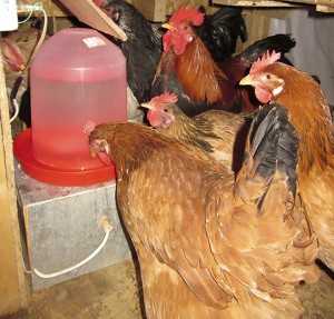 Поскольку тёплая жидкость лучше усваивается птичьим организмом, особенно зимой, то предусмотреть обогрев поилки было бы очень желательно. Охлаждённая вода не только вызывает болезни, но и просто замерзает, нарушая водный баланс организма кур.