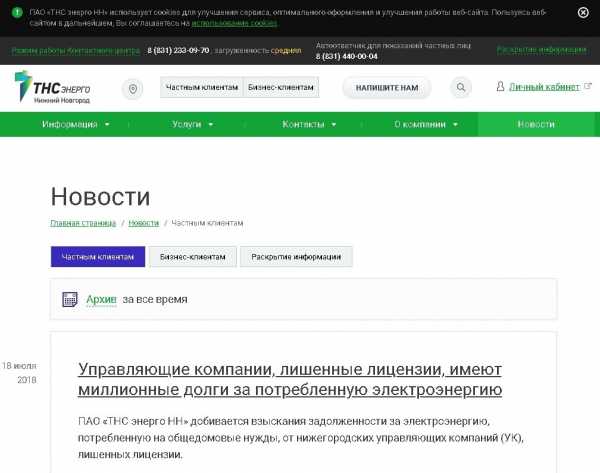 После того, как большинство компаний стало активно разрабатывать собственные сайты, ТНС «Энерго» также запустил свой портал, где собрал все самые важные и актуальные сведения для пользователей своих услуг, а также для посетителей, которые только заинтересовались предоставляемыми компанией услугами.