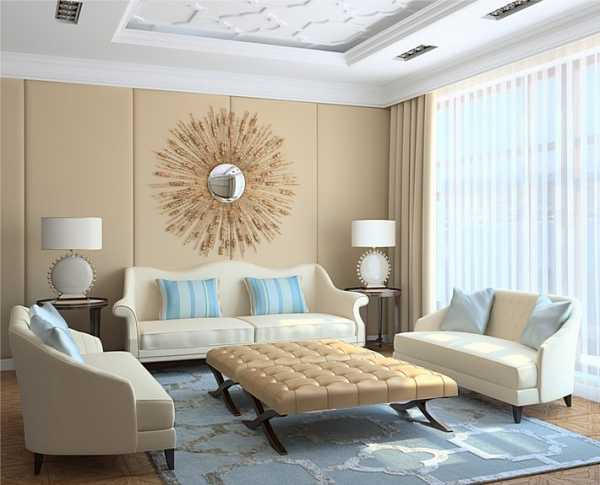 В любом случае если ваша мебель бежевых оттенков, то стены не должны подавлять ее яркими цветами, лучше, если они будут выполнены в спокойной гамме.