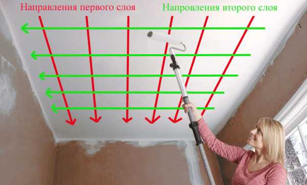 Последовательность покраски потолка валиком: