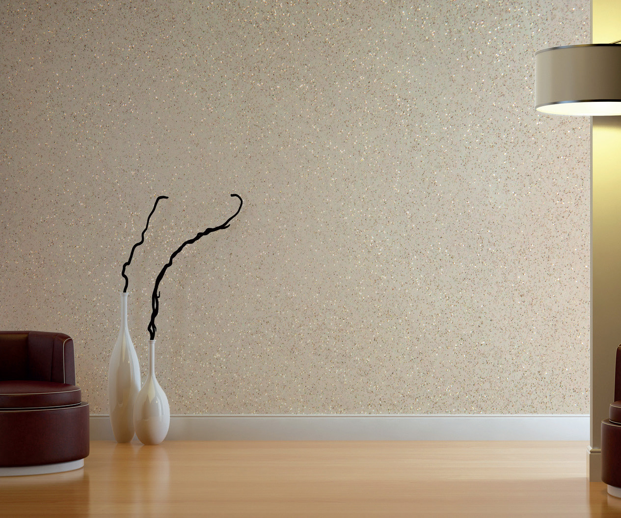 - Перламутровый раствор. При окрашивании получают изящный жемчужный отлив. Чтобы получить такой оттенок, перламутр измельчают, смешивают с водой, после добавляют в акрил. Можно добиться покрытия похожего на мокрый шёлк. Для этого необходимо осуществлять фактурную окраску стен с помощью валика, действовать можно в любом направлении.