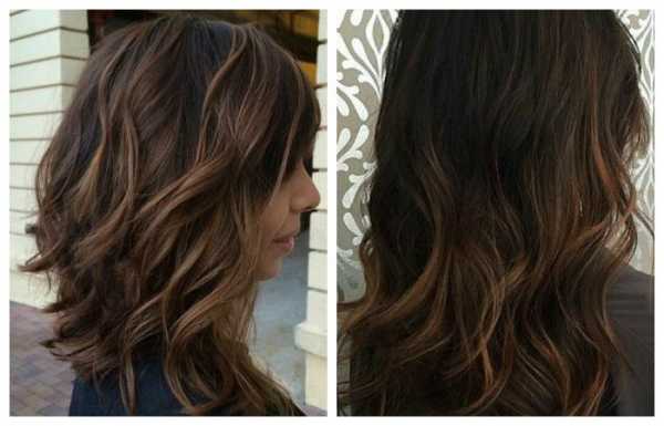 При таком окрашивании за основу нужно брать светло-коричневый цвет. Пряди принято высветлять от темной прикорневой зоны к светлым концам.