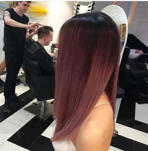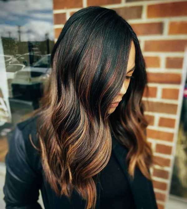 Эксклюзив для шатенок и брюнеток, окраска средних волос плавно меняет цвет по вертикали с обязательным небольшим отступлением от корневой зоны.