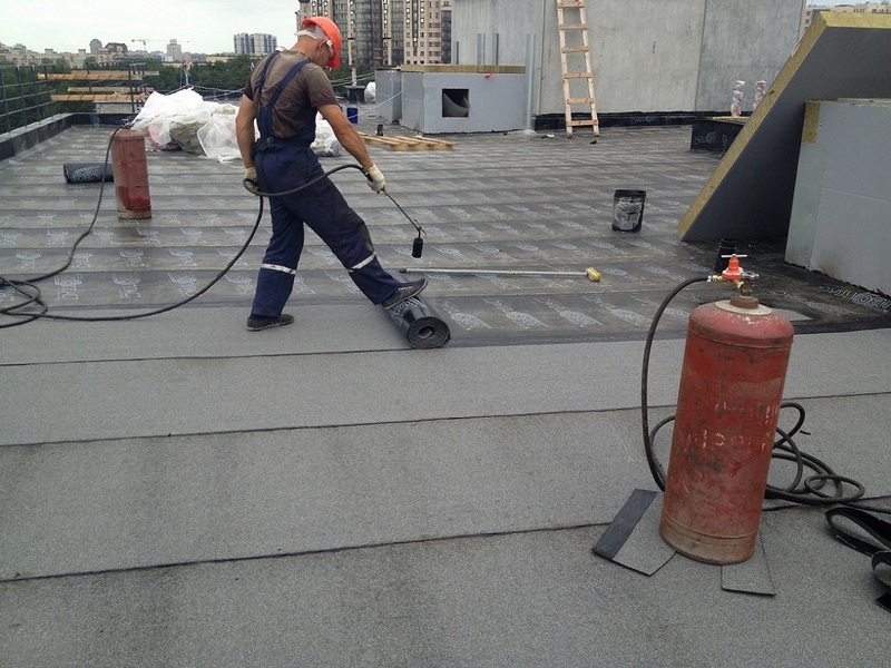 Это улучшает сцепление стеклоизола с основой при наплавлении.При укладке стеклоизола на деревянную крышу необходимо выполнить сплошную обрешетку из обрезной доски или влагостойкой фанеры и покрыть ее мастикой на битумной или полимерной основе.Бетонную поверхность покрывают праймером