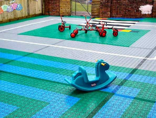 Самыми доступными для обустройства игровой зоны на дачном участке являются пластиковые модульные покрытия