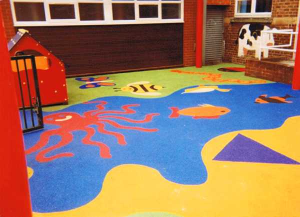 Долговечность. Наверно, это лучшее покрытие для детских площадок. Его невозможно ни сбить, ни стереть.- Кроме того, у него могут быть разные цвета, безопасно оно и с экологической точки зрения.