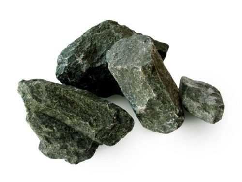 Порода словно создана для каменки. Долговечность, плотность, гигроскопичность, устойчивость к высоким температурам, а главное высокая степень аккумуляции и передачи тепла, выгодно отличают минерал среди прочих банных. Внешне не очень привлекательный, серых и скучных тонов, он не выделяет никаких веществ при нагревании, абсолютно безвреден.