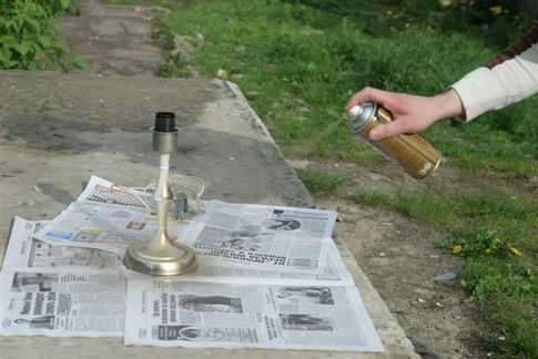 - аэрозольная краска под золото быстро сохнет, ею можно красить в несколько слоев;