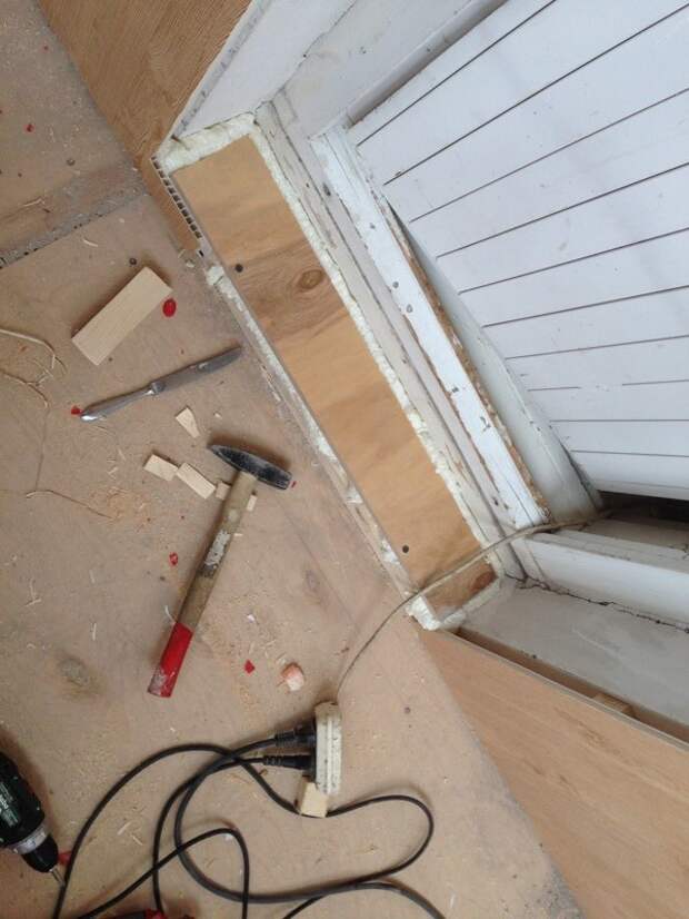 - После этого устанавливается подоконник и пеной заделываются пазы.