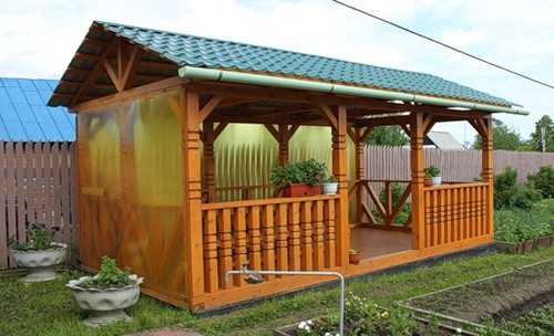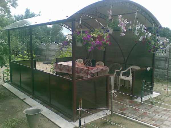Металл часто сочетают с поликарбонатом. Этот прочный и долговечный пластик легко крепится к металлической основе при помощи болтов. Поликарбонат легко гнется, из него можно сделать крышу или стены причудливой формы. Прозрачная конструкция будет удивлять гостей и даст законный повод для гордости строителю.