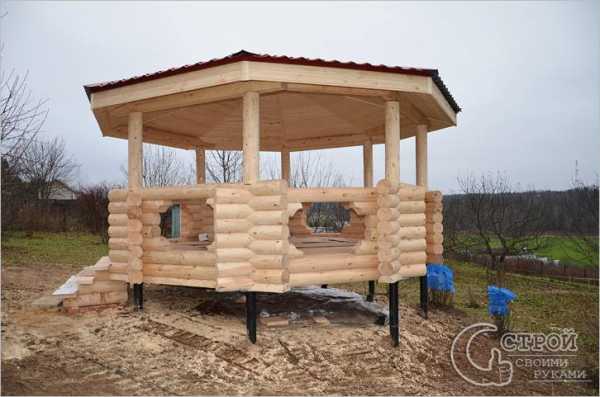 Процесс строительства одного из вариантов беседки смотрите ниже: