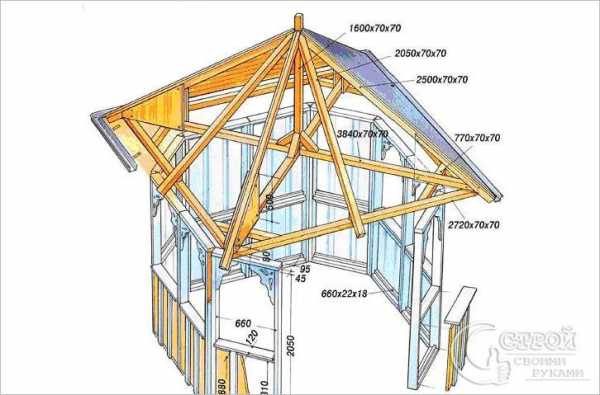 Каркасы разных видов крыш для беседок представлены на фото ниже: