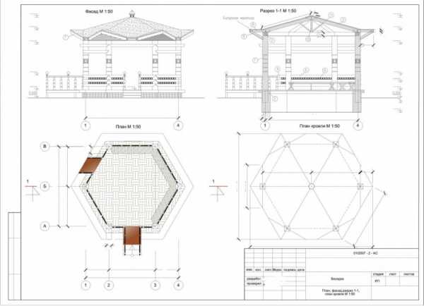 Но самое главное преимущество в том, что работа с деревом не требует высокого профессионализма – если остановится на несложном варианте – или специальных инструментом. Теперь можно перейти к первому и самому ответственному пункту строительства – проекту беседки.