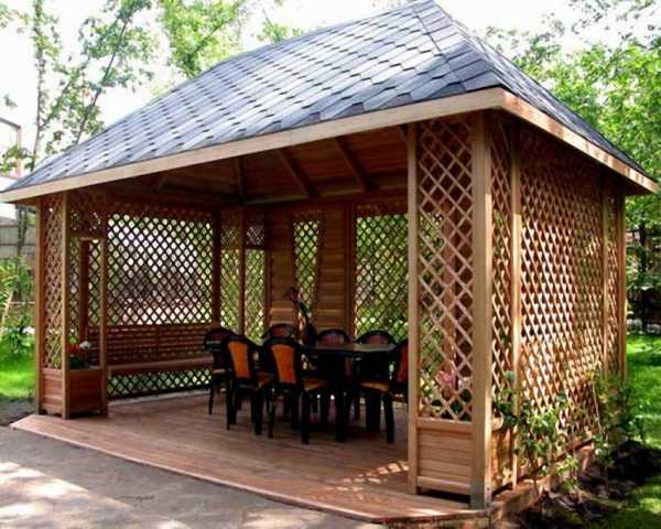 Пороемся в сарае и посмотрим, что пригодится для строительства. Доски и брус остаются после возведения дома практически у всех. Дерево – благодатный материал, его легко обрабатывать, необходимые инструменты всегда под рукой. Деревянные павильончики украсят участок, на них приятно смотреть, они сочетаются с зеленью сада, манят кружевной полутенью в жаркий день.