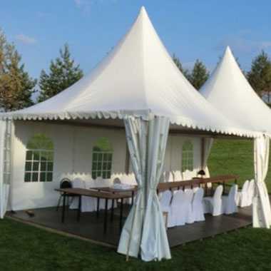Как видно на фото, для беседки-шатра на даче в качестве покрытия можно использовать плотную цветную ткань, клеенку или толстую пленку: