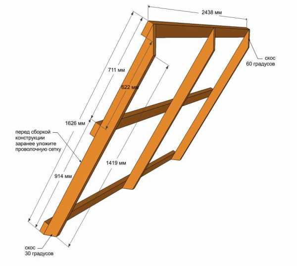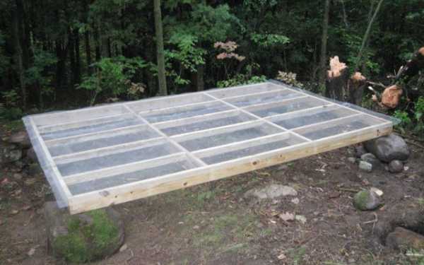 - Сначала уложите нижний слой досок, сверху прикрепите каркас.