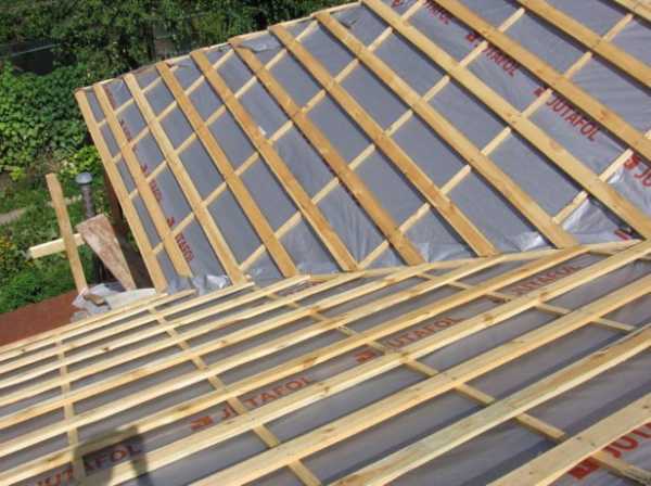 Третий шаг. Прибейте к стропилам сплошной настил из досок (если для финишной отделки будет использоваться мягкий рулонный материал) либо соорудите обрешетку (если вы планируете отделывать крышу черепицей, шифером или другим листовым материалом).