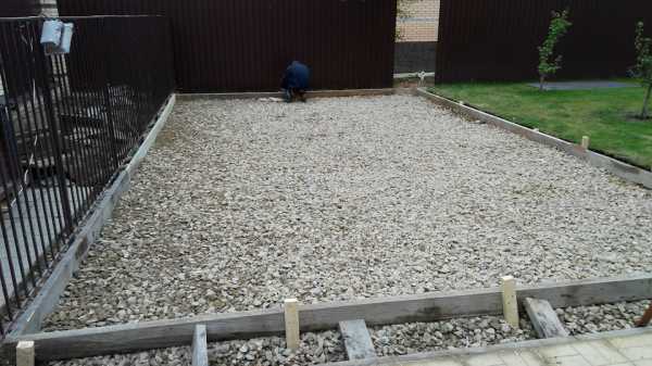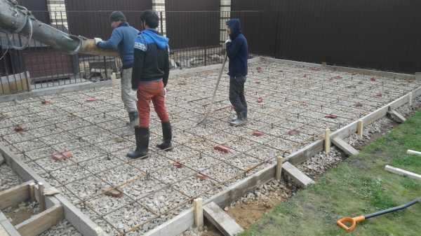 - Поверх укладывают арматуру для придания основанию большей прочности, и котлован полностью заливают раствором бетона