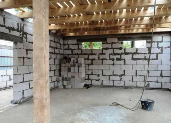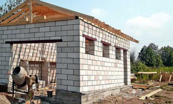 После заливки фундамента останавливают работы до того момента, пока бетон полностью не затвердеет. Далее приступают к возведению стен. Рассмотрим вариант, когда используется ленточный фундамент и в качестве материала стен используют газосиликатные блоки.