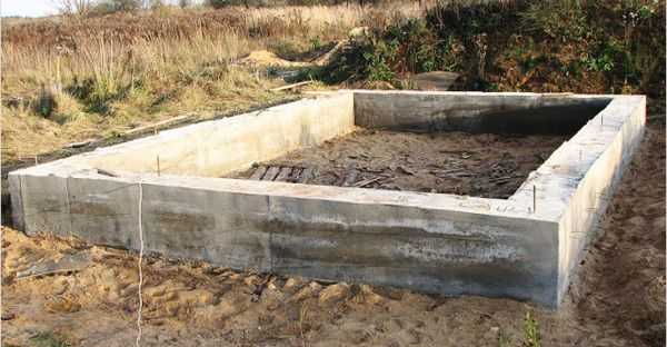 Ленточный фундамент (разновидность монолитного) закладывают под тяжелые постройки. По периметру будущих стен вырывается экскаватором или вручную траншея определенных размеров (глубина ленточного фундамента может быть от 50 см до 1,5 м), в нее насыпается песчаная подушка, которая обязательно гидроизолируется, затем делается опалубка, укладывается арматура и поверх всего этого заливается бетон. Через неделю опалубку снимают и фундамент гидроизолируют.