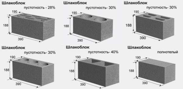 Не забудьте также учесть классификацию шлакоблоков по конфигурации. Они бывают полнотелые и пустотелые. Первый вид предназначен для возведения стен. Второй можно использовать для устройства фундаментов. Если использовать блоки не по назначению, то ваша постройка может получиться некачественной и ненадёжной.