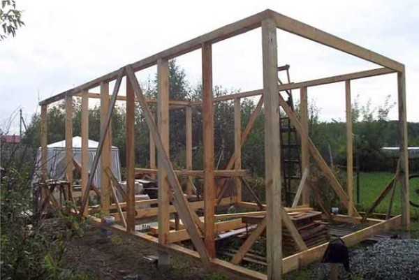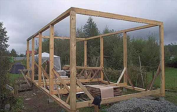 К установленным стойкам привариваются горизонтальные элементы. Сварка осуществляется в трёх точках. Если вы планируете изготовить деревянный каркас, то к стойкам необходимо приварить особые крепления. Между собой брусья скрепляются саморезами.